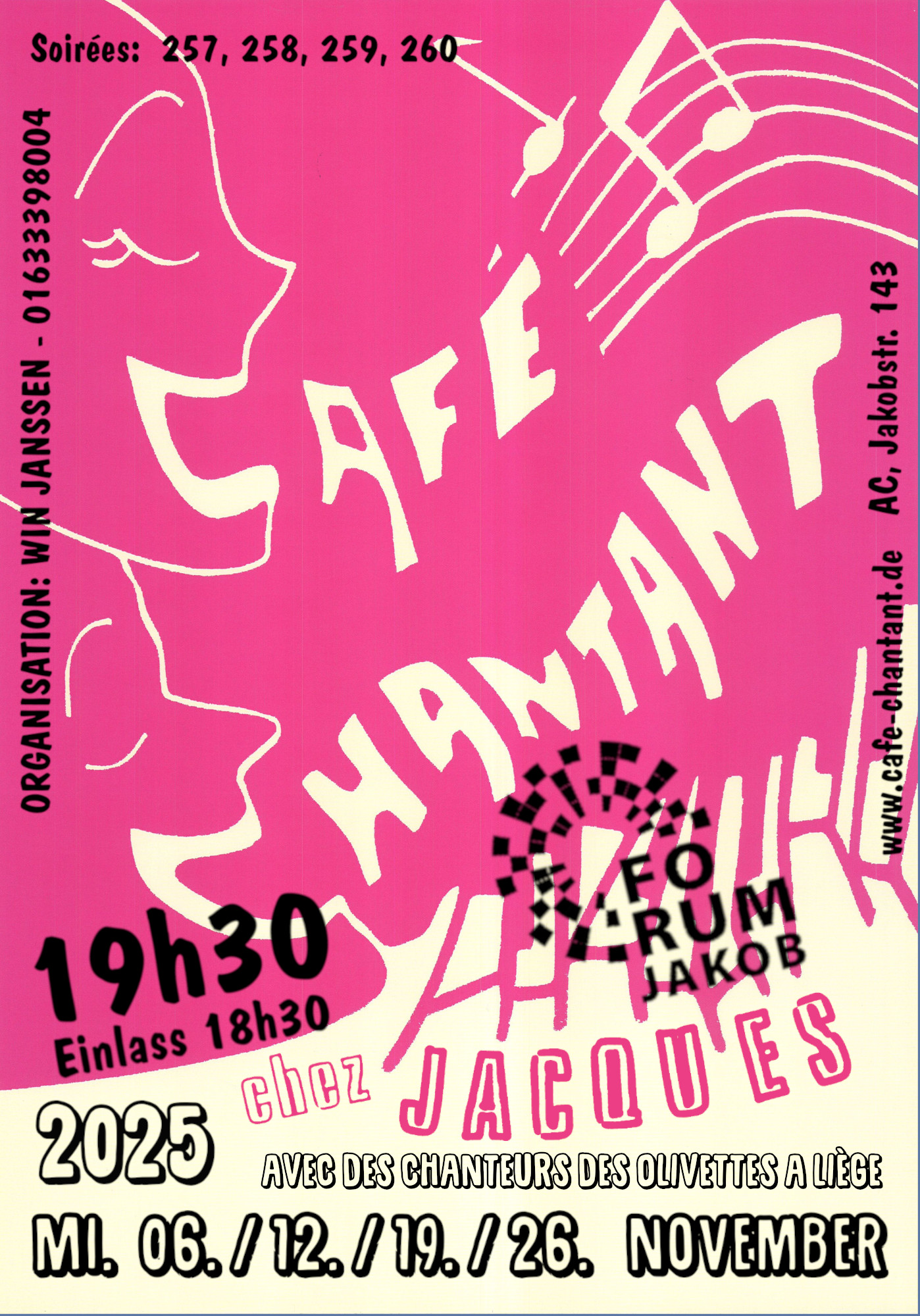 Mi. 06./12./19./26. November 2025 : Café-Chantant chez JACQUES